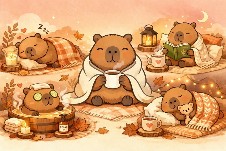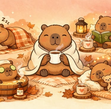 The Cozy Capybaras coloring book is designed to provide an immersive artistic experience, catering to both colorists who seek relaxation and those who indulge in creative expression. Inspired by the tranquil and friendly nature of capybaras, this book invites users into a calming world where they can engage with intricate illustrations of these charming creatures in various serene settings. The capybara, often regarded as the world's largest rodent, symbolizes relaxation and peace, making it the perfect muse for a coloring book aimed at fostering mindfulness.
